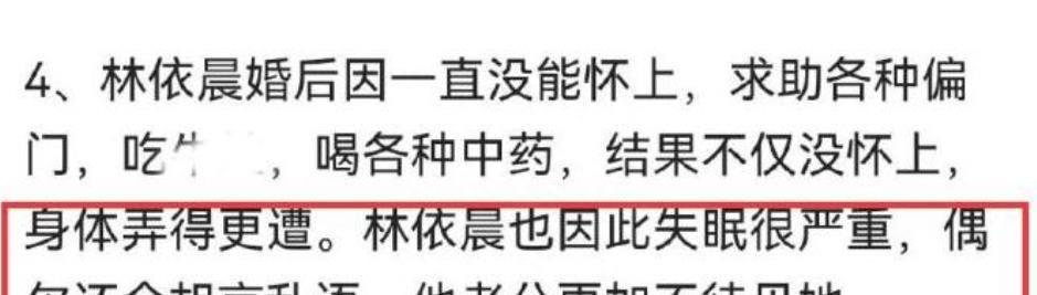 婚礼结束后,林依晨积极准备怀孕。他不仅要服用各种中药,还尝试了各种偏方,却长期无法怀孕,但几年后却成功生下了女儿。