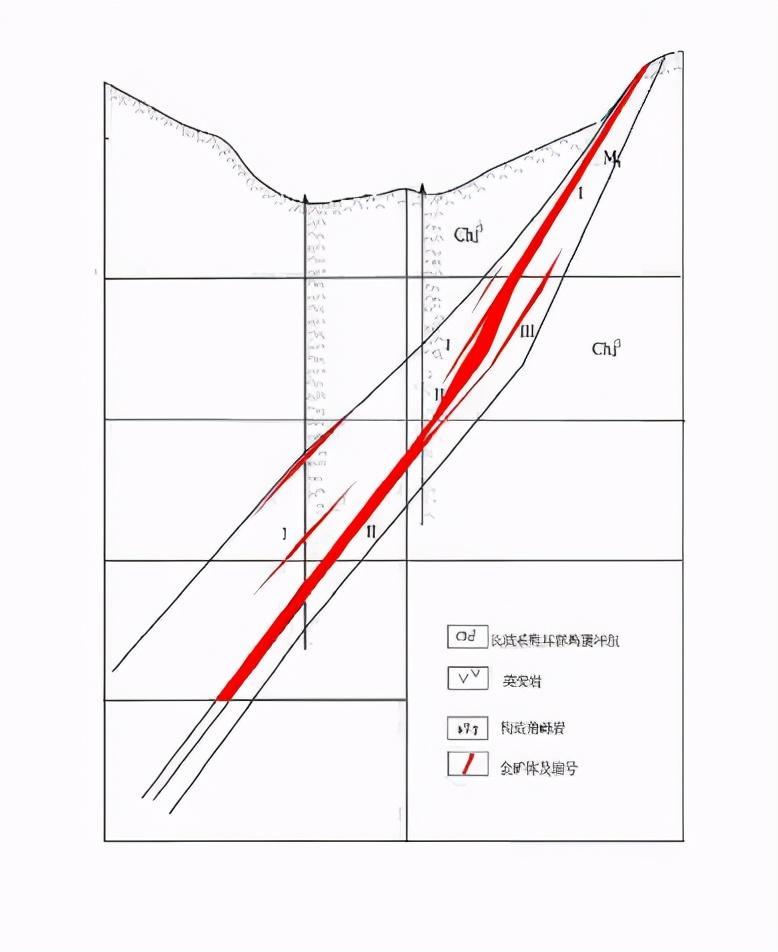 M1-1号矿体,矿体沿走向控制长度600m,呈舒缓波状分布在构造蚀变带接近顶板的位置,控制垂深435m,矿体赋存标高-20—415m,矿体走向20度左右,倾向北西、倾角54—70度,矿体最大厚度22.04m,最小厚度0.49m,平均厚度4.88m,金品位一般1.32—4.94g/t,金平均品位2.89g/t。