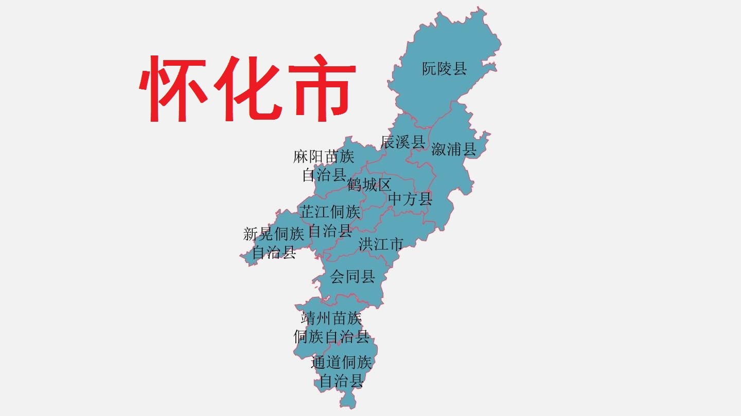 怀化市总面积27573平方千米,下辖1个区(鹤城区)、5个县(辰溪县、中方县、沅陵县、溆浦县、会同县)、5个自治县(麻阳苗族自治县、新晃侗族自治县、靖州苗族侗族自治县、通道侗族自治县、芷江侗族自治县),代管1个县级市(洪江市)。 截至2022年末,怀化市常住人口452.07万人。