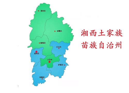湘西土家族苗族自治州,州政府驻吉首市。地处湖南省西北部,州境东北临张家界市毗邻,东南接怀化市交界,西南与贵州省(铜仁市)为邻,西与重庆市毗连,北与湖北省(恩施州)交界。
