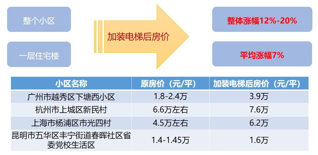 注:随机选择四个城市加装电梯后房价的变化(图源网络)。