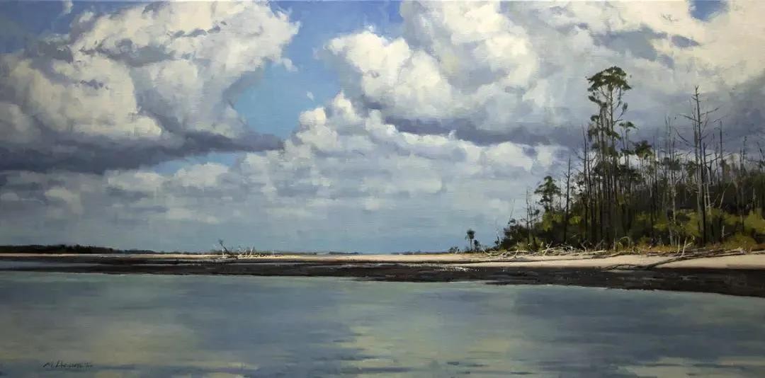 作为一个自然主义者,马克·汉森的画作充满了对自然和风景的热爱。他将风景视为传达他对世界喜悦的完美媒介,通过细致观察和表现主义原则,将自然之美呈现在画布上。对他来说,作为一名画家,最大的挑战之一是如何将绘画的核心原则转化为有效的视觉陈述,并让观众分享他的喜悦。