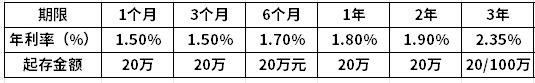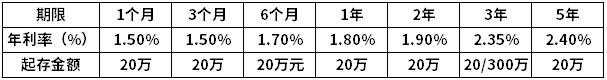 四大行普通定期存款利率表