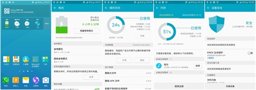 三星Galaxy A9还内置了今年预装于各款机型上的“智能管理器”,包括电源管理、存储管理、RAM管理、设备安全管理四大项管理。这四项管理也是人们平时比较需要的智能机设定应用,能够很好地帮我们管理使用进程等等,更好的提高使用效率。