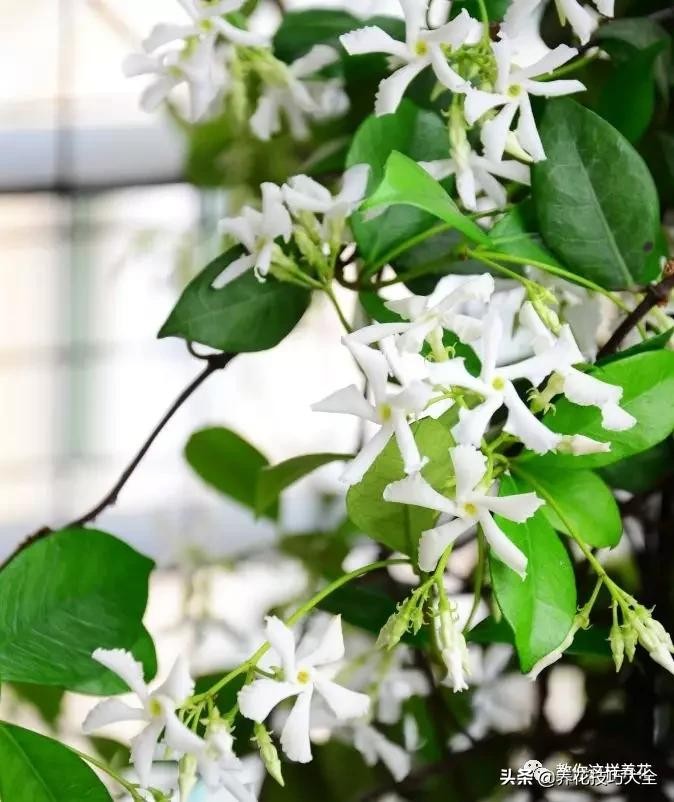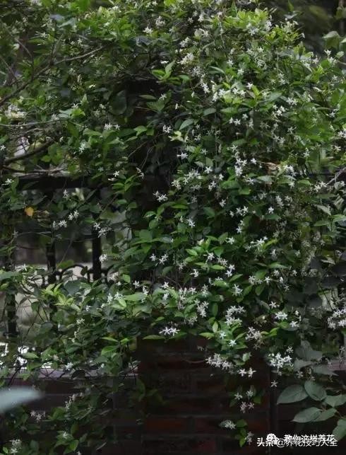 风车茉莉也叫络石,每一朵小花,就像一个白色的小风车,十分可爱。风车茉莉四季常青,花皓洁如雪,幽香袭人。花期很长从4月份开到11月份,不是茉莉,胜似茉莉。除了花期长,花美花香,风车茉莉的病虫害很少,几乎都不用怎么管理,是新手花友非常好的选择。
