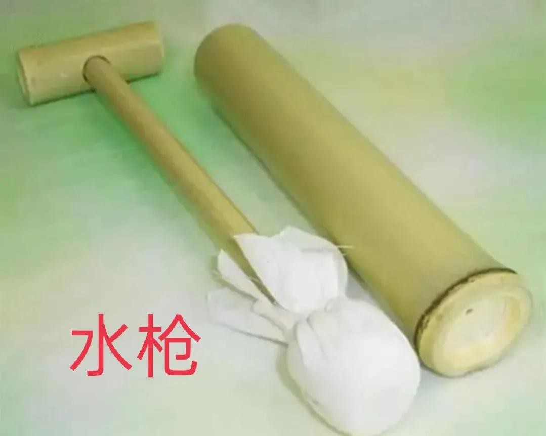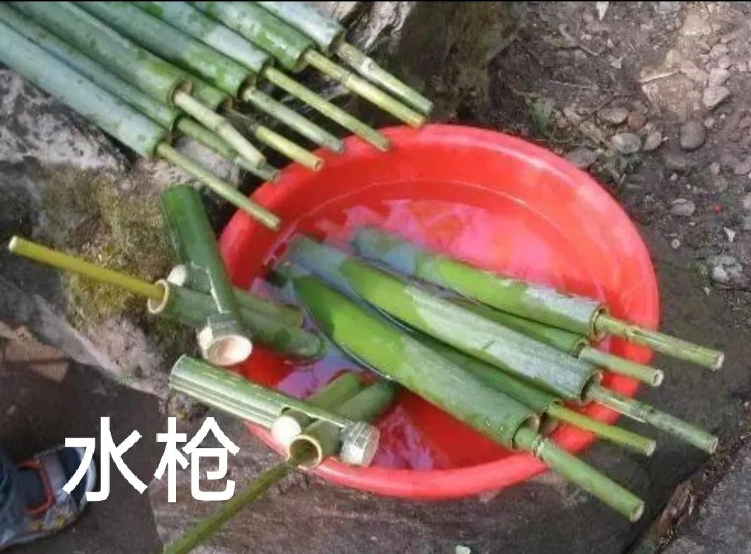 这种水枪也是用竹子做的,做法类似于我们打针的注射器一样。小的时候我也做过,很简单。