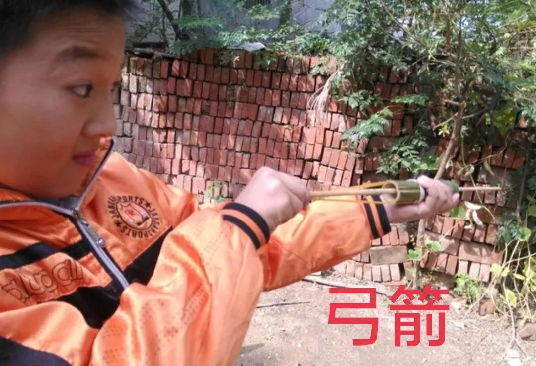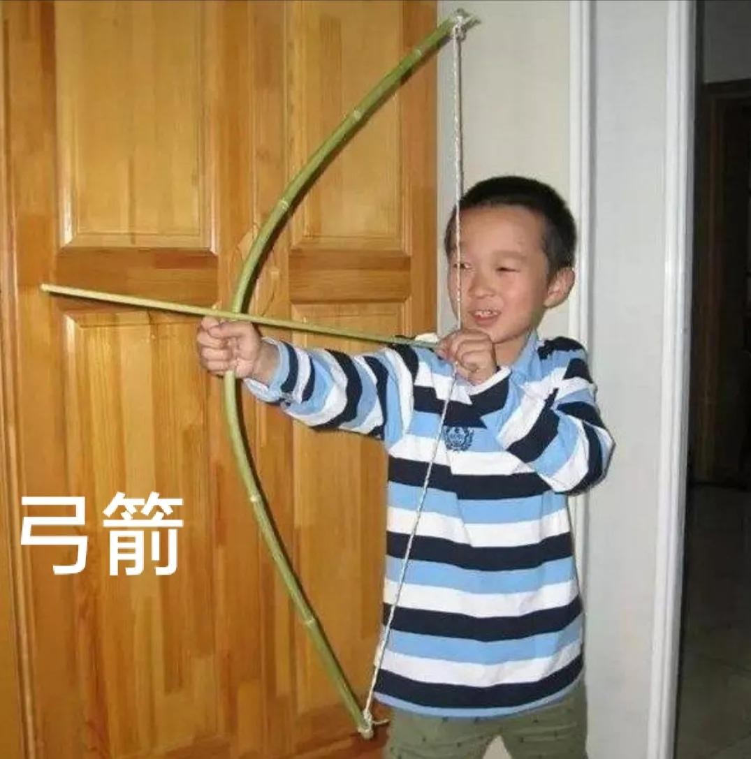 在竹子或是木条的两端绑上一根细绳,做成的弓箭。不过玩的时候要注意安全,有的威力会很大,要注意安全。
