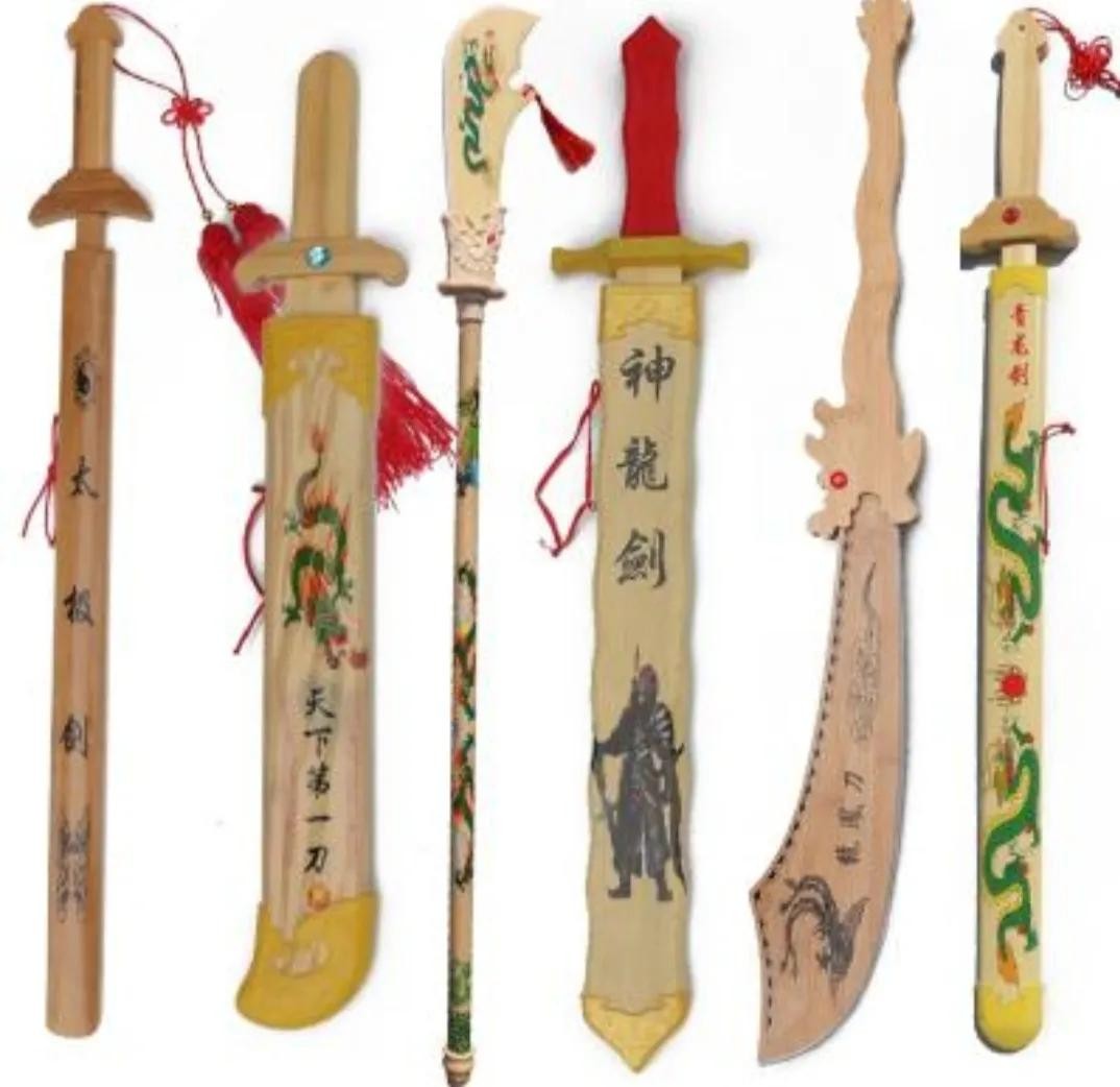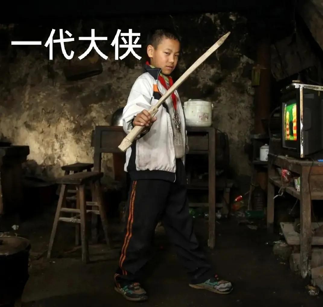 小的时候经常跟着大人一起看露天电影,那些武侠电影里的人总是拿着刀枪棍,棒斧钺钩叉打斗。所以我们也是经常模仿,就用木头或是竹子做一些刀啊,剑啊,拿在手里玩,心里装着一个武侠梦。