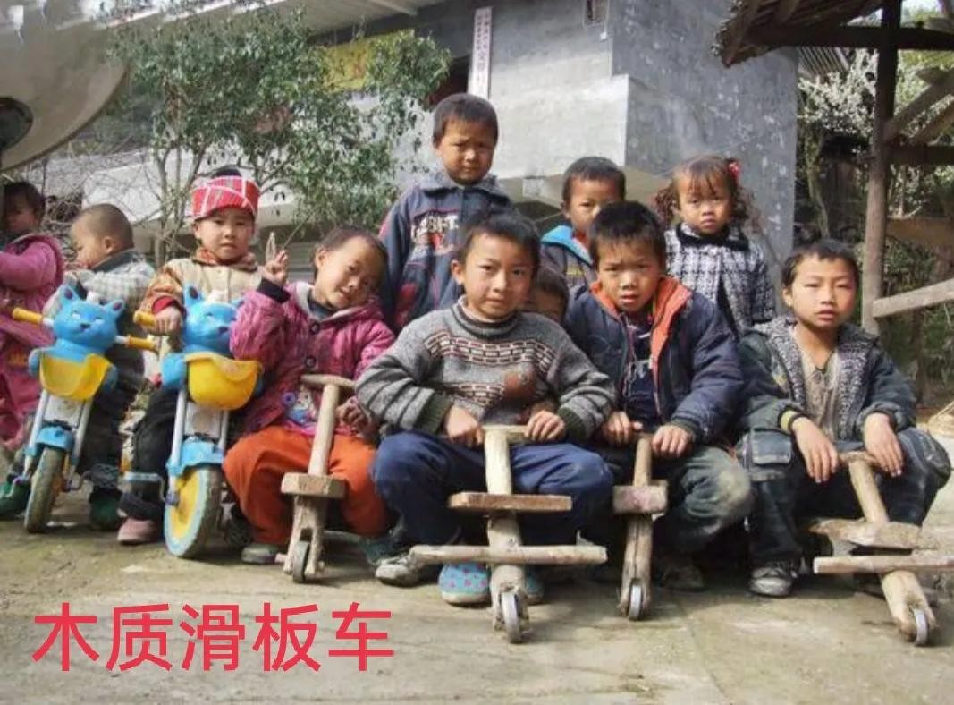 这种滑板车一般都是用木板和一些旧的轴承订在一起组成的。有三轮的,也有四轮的,平地要别人推或是拉,要是下坡路就不需要了,自己就可以滑下去。不过滑的时候要小心,如果下坡路太陡,控制不好的话容易翻车。