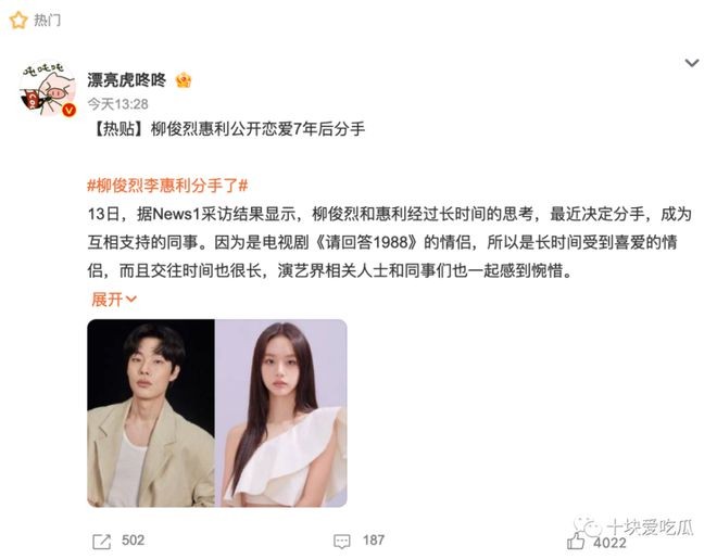 请在评论区分享你的看法和经验吧!《请回答1988》两位男女主角柳俊烈和李惠利,因戏生情,七年恋情宣告结束。李惠利曾安排咖啡车为柳俊烈应援,自称是他的头号粉丝,