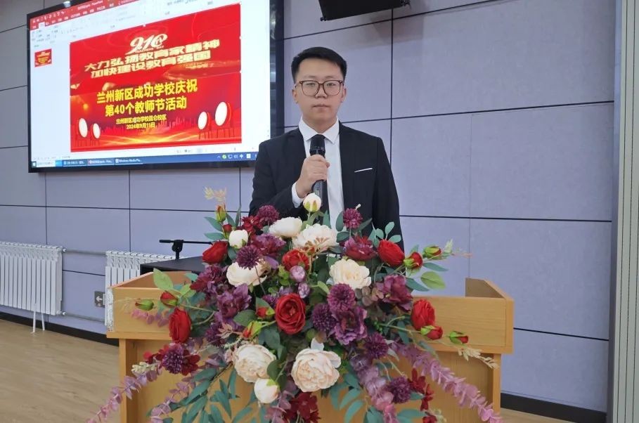 优秀教师代表智慧初中张凯老师在发言中祝福所有同仁节日快乐。他用“感恩”“团队”“行动”三个词对成功学校提供的发展平台表示感谢,对所有领导和老教师的指导帮助表示感谢,对身边的同事和可爱的学生表示感谢。他表示,在成功这个向心力强劲、生命力强盛、 战斗力强悍的团队里,所有成功教师将一往无前,逐梦远航,凝心聚力,向光而行!他号召全体教师同仁用真诚的感恩之心,精诚的团队合作之力,竭诚的有效行动,共同创造成功学校的美好家园,共同谱写教育赞歌。