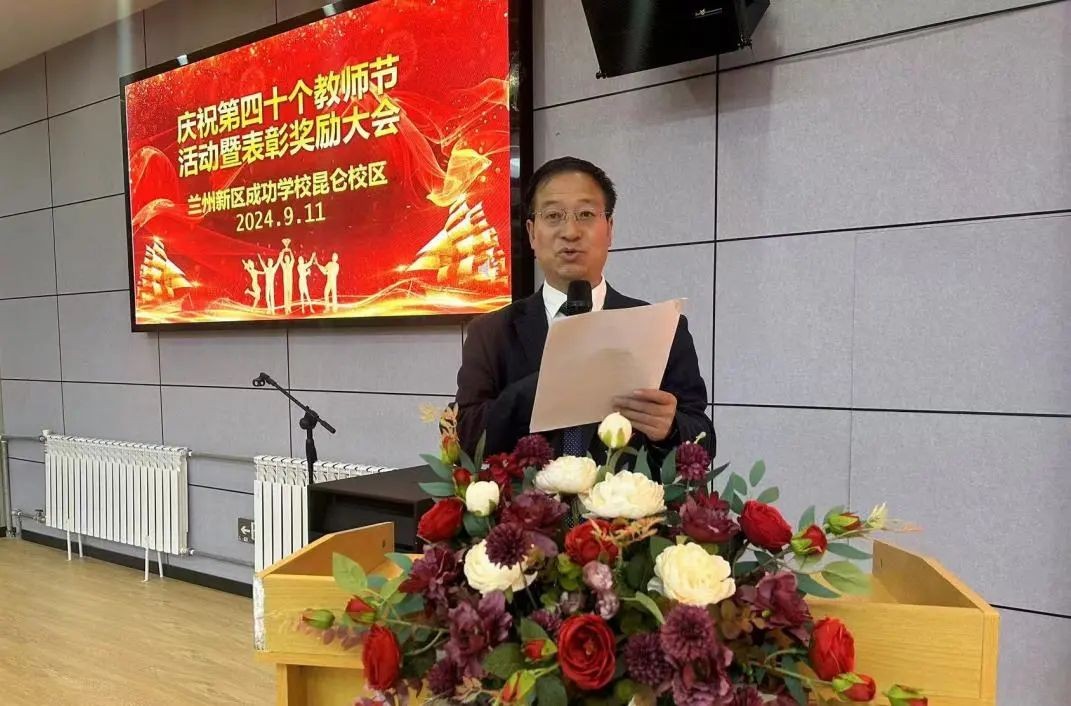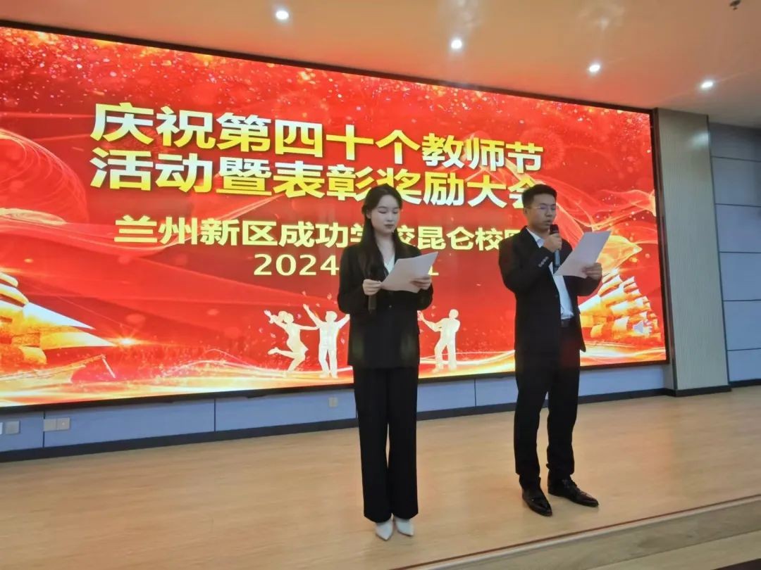 在第40个教师节即将来临之际,为全面展示新时代成功学校教师立德树人、自信自强的精神风貌,大力激发学校教师的职业荣誉感和自豪感,热情讴歌为成功学校教育事业付出辛勤努力的教师,凝心聚力推动学校教育事业再上新台阶、实现跨越式大发展。9月11日晚,兰州新区成功学校昆仑校区召开庆祝第40个教师节暨表彰大会。