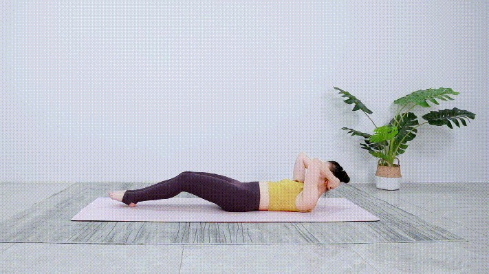 将双手放在耳后,上半身微微抬起,吸气双腿曲膝收向胸口,呼气双腿伸直,感受到小腹在收紧发力。动作重复30次。