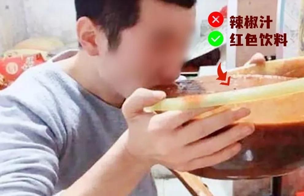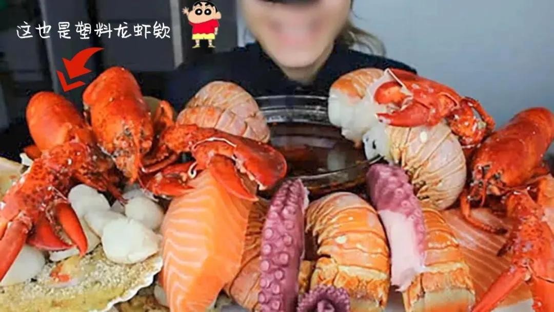 我们在很多吃播中可以看到一些博主吃巨大龙虾的画面,但实际上这些龙虾或是用塑料龙虾替代,或是通过运镜的特殊方式,在视觉上给人造成大龙虾的错觉。更有主播为了展现猎奇、吸引观众,喝盆装辣椒汁,实际上这些辣椒汁只是普通的红色饮料。