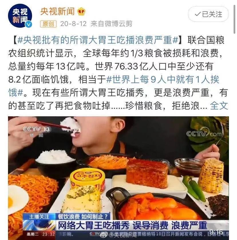 2020年7月,30岁的主播沈阳王先生在做“吃播”后,一天只吃一顿饭,平均两天直播一次。半年多的“吃播”生涯,为他收获了不少粉丝及打赏,但其体重也从200斤升到280斤,后突然身体发麻、头晕目眩,医院抢救7天后死亡。