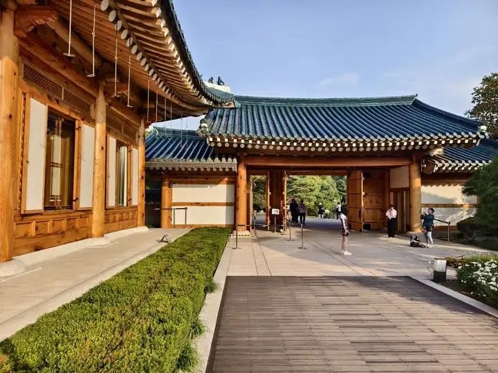 总统官邸是一座漂亮的韩式庭院,虽然无法直接进入屋内参观,但围着转一圈,古朴庄重的韩式风格造型还挺值得一看,部分屋子可以从外侧看到里面。