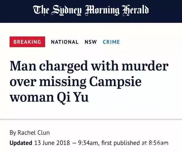 今年6月,28岁的中国在澳留学生于琪(Qi Yu音译)被曝失踪。