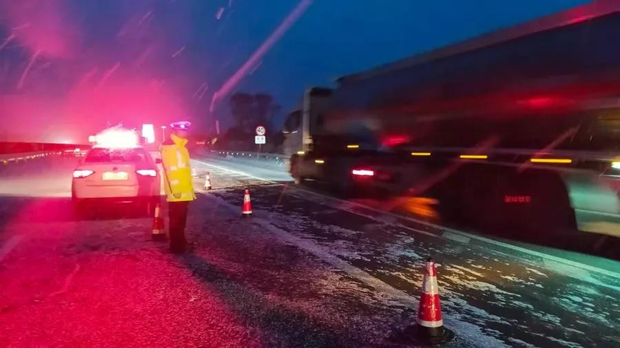 其次,在封路期间,交警会根据天气情况,持续不间断地进行巡逻,同时连同路政养护部门及时清雪除冰,然后根据路面情况,采取间断放行、分车型放行(先放行重型货车进行对路面进行碾压,加快雪的融化,然后解除小车,最后才解封客运车和危化品车辆)、警车分批次压速带道通行的方式逐步解除交通管制。