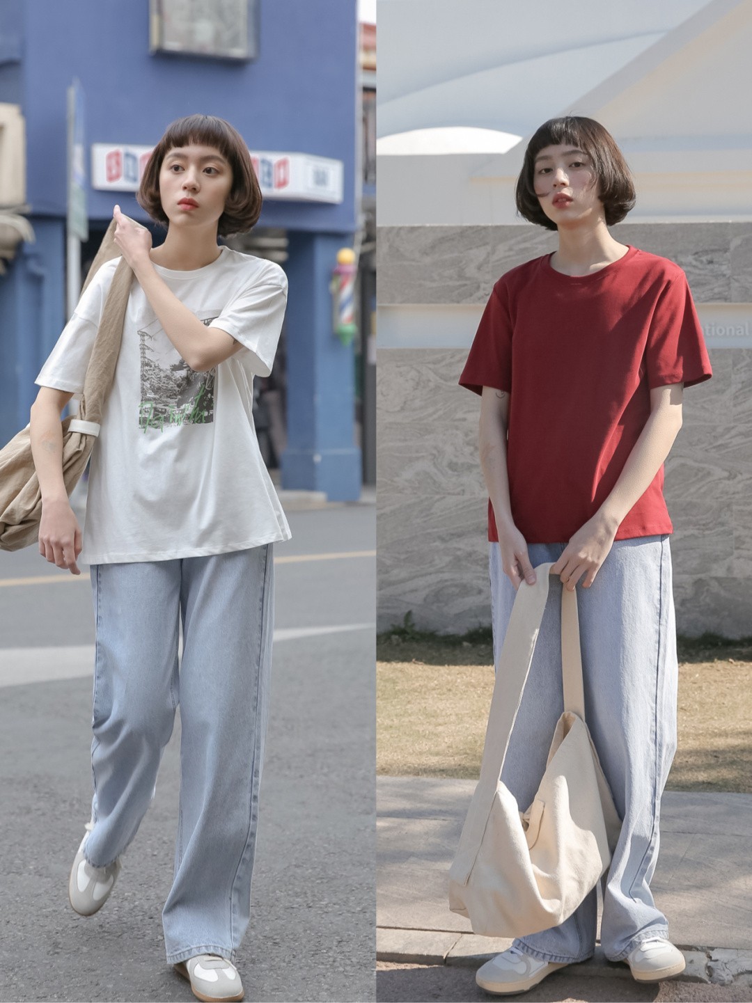 想要走休闲风的姐妹就可以通过宽松的t恤搭配牛仔裤,这种oversize的T恤穿在身上时尚度非常的高。