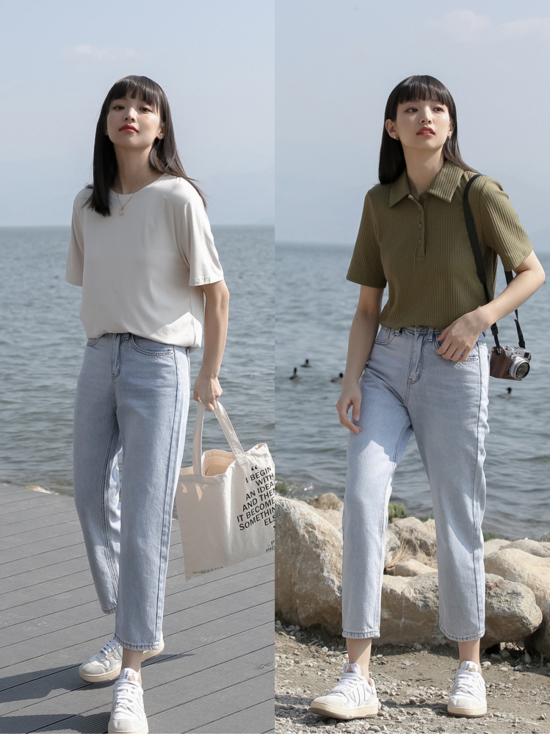 穿牛仔裤的时候,姐妹们可以匹配休闲风的鞋子,就例如小白鞋和牛仔裤也是一组很合拍的搭档,用休闲的牛仔裤去搭配上简单的小白鞋,看上去很有活力,减龄效果立竿见影,日常穿也很ok。