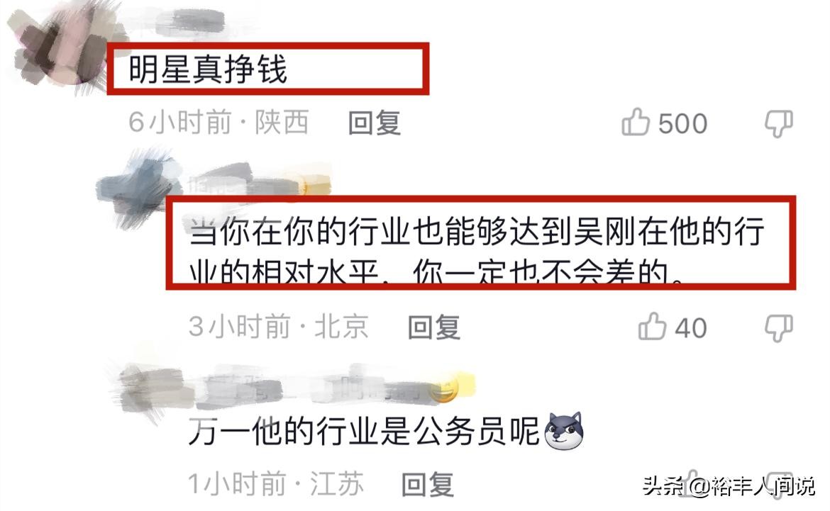 其实此事需要以平常心看待,因为吴刚是演员,所以这件事情就被放大,但却没有人去了解吴刚这一路走来的不容易,赚钱的背后需要付出更多的努力。