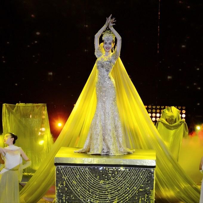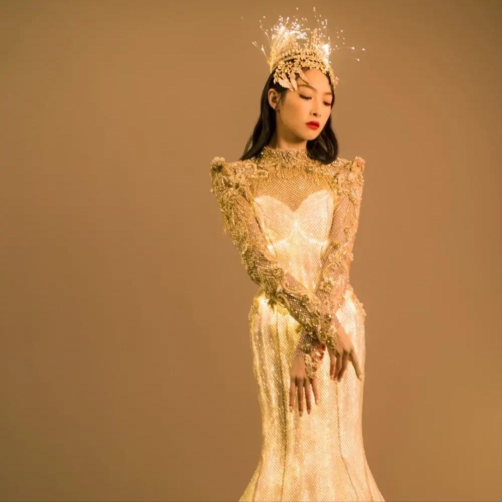 迪丽热巴凭借《漂亮的李慧珍》这部剧,作为2018届的金鹰女神,身着金光闪闪的女神战袍登场,美艳动人。