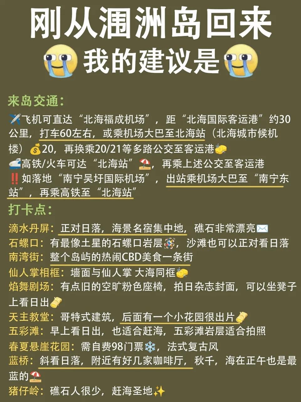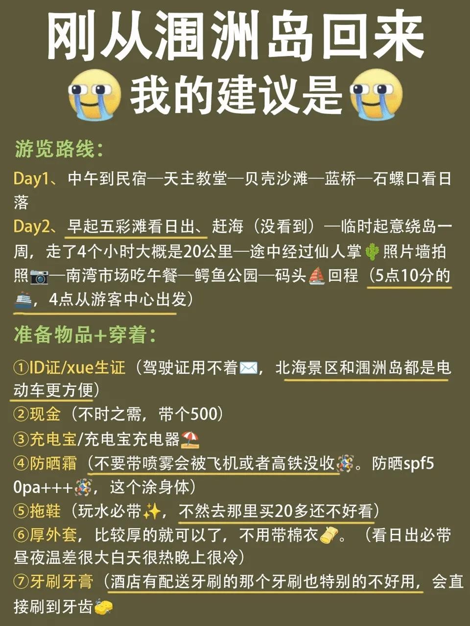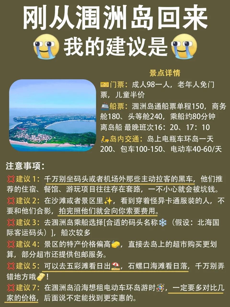 第一次去涠洲岛就翻车真的太惨了,妹子们别跟我一样从头踩坑到尾!整理了所有注意事项,让你轻松玩转小众海岛️