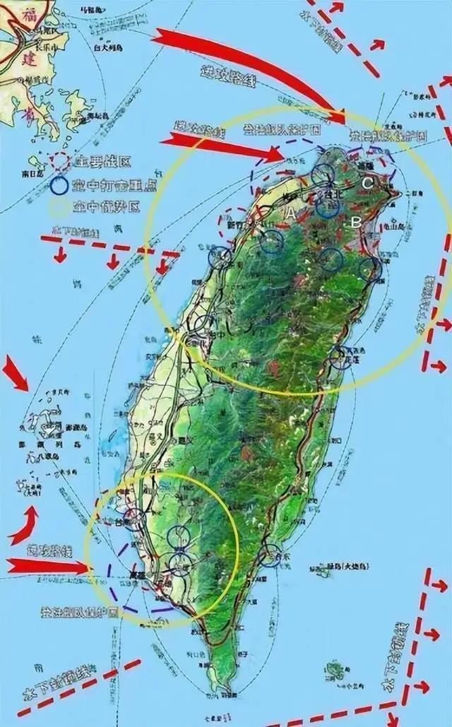 96年台海危机,解放军模拟攻台演习图示