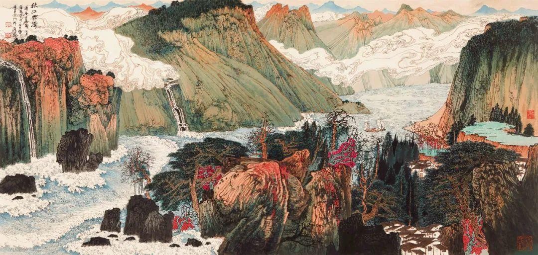 《秋江云涛》70cm×145cm 中国画 2012年