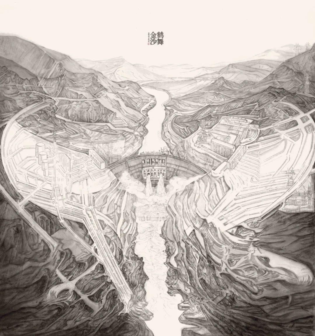 《鹤舞金沙》201cm×192cm 中国画 2024年
