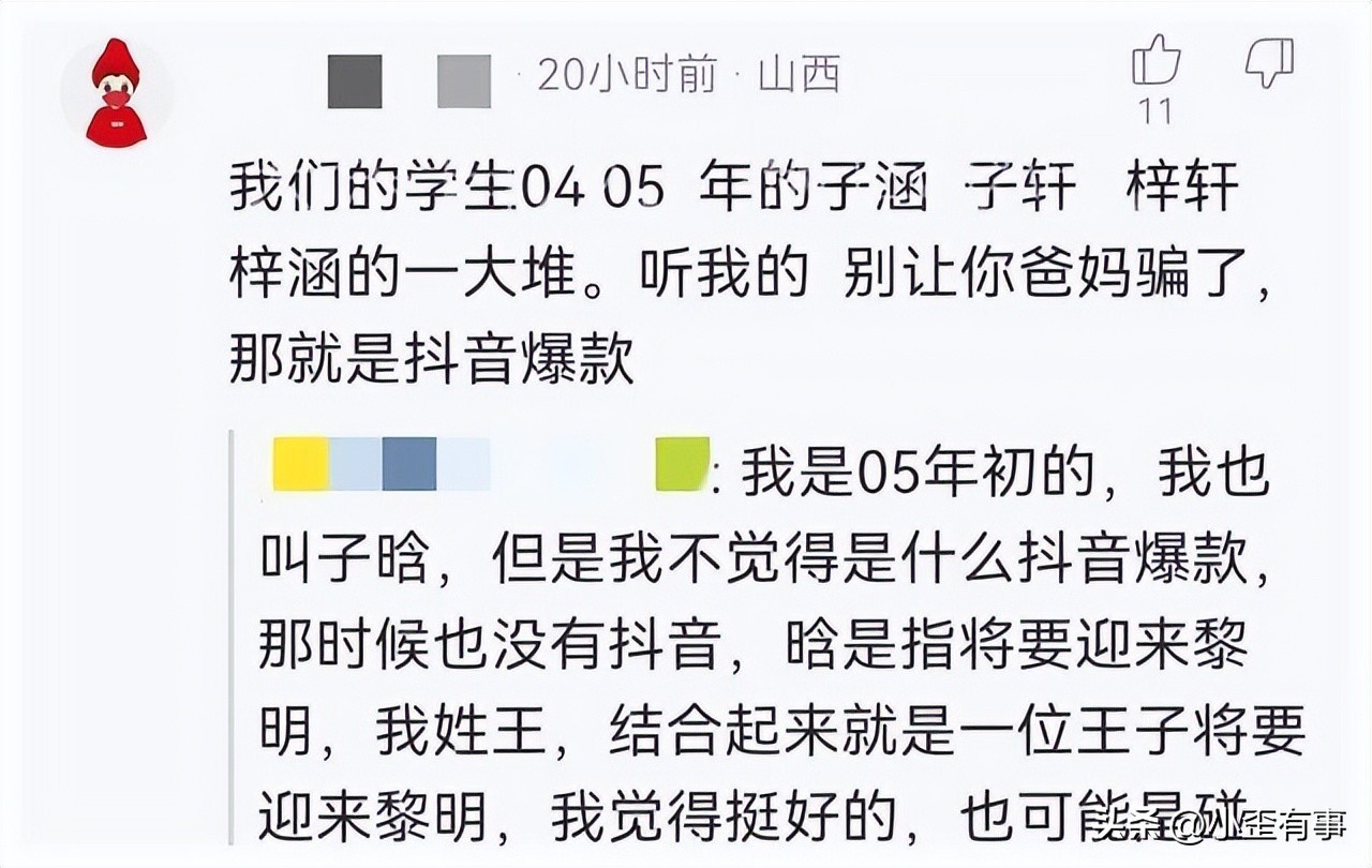 然而,这种落俗套的取名现象却普遍存在,这样的名字可能让孩子在日后的生活中被人笑话。不少网友在评论区纷纷晒出自己取名的经历,引起了更多人的共鸣。