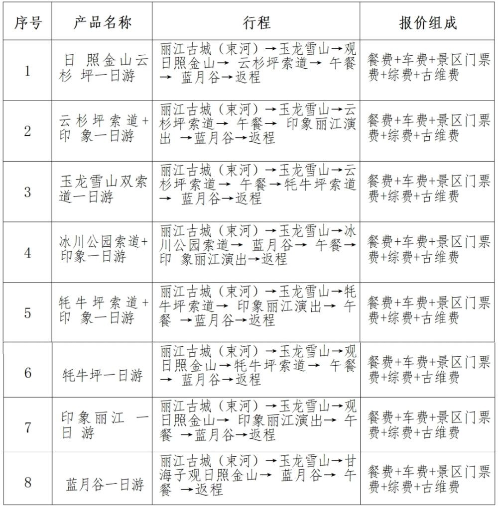 丽江玉龙雪山“一日游”产品诚信指导价发布