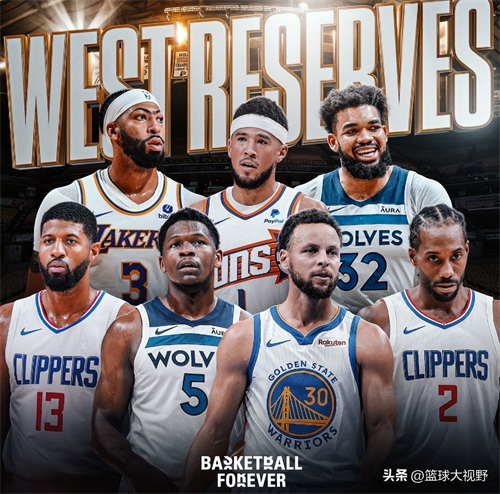 再看看西部全明星替补名单,他们是:库里、伦纳德、乔治、浓眉、布克、爱德华兹、唐斯。