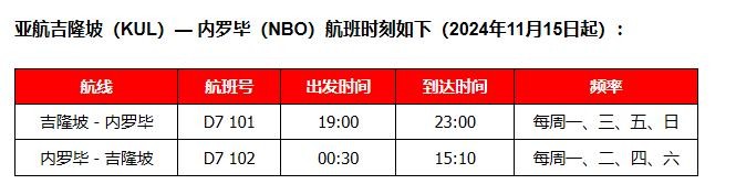 目前,亚航宣布首航促销价为1582元起。优惠订票时间从即日起至2024 年7月14日,出行日期为2024年11月15日至2025年10月8日。乘客可通过亚航官网、亚航微信小程序以及其他OTA平台预定机票。