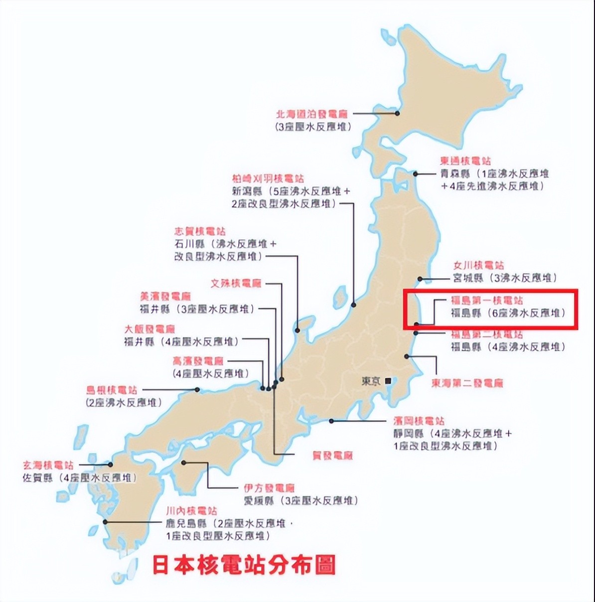 福岛核电站位置和日本核电站分布图