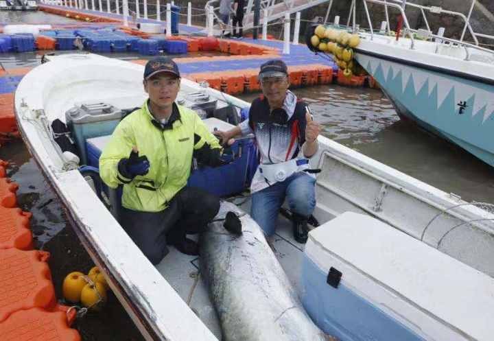 钓获这条马鲛鱼的是资深海钓爱好者,人称“舟山大小章跳”的一对父子。当天下午,父子俩在东福山海域挑战马鲛鱼拖钓,大约3点多的时候,这条马鲛鱼被钓上船。