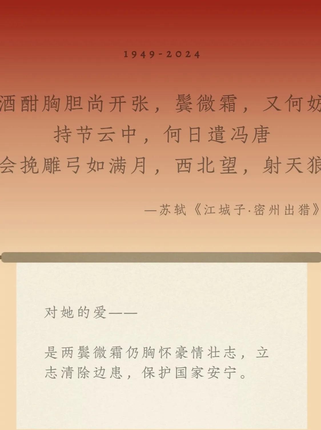 国庆,是祖国母亲的生日,让我们在古诗词的韵味中,感受那浓浓的家国情怀,汲取力量,砥砺前行。愿祖国的明天更加美好,如同诗中描绘的那般辉煌灿烂!