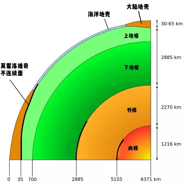 一般来说,地壳在5-70千米的厚度范围内,海洋地壳的厚度较小,在8千米左右,大陆地壳的厚度则在20-70千米。所以即使按最薄的陆壳算,科拉超深钻孔也才刚刚钻透一半,更别提那些比较厚的地方了。而按照地球的平均半径6371千米来计算,科拉超深钻孔也只钻到了0.2%的位置,实在是太微不足道了。