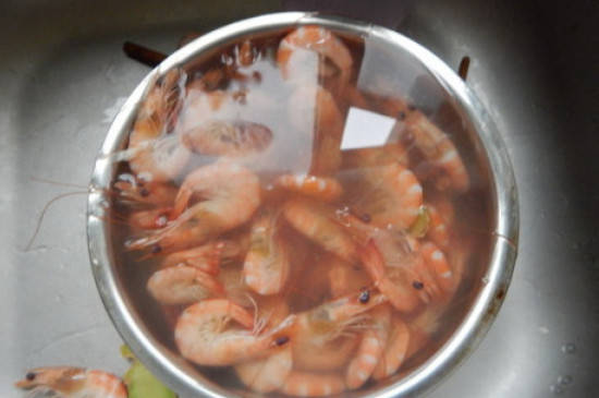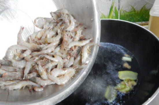 然后在锅中倒入清洗好的虾,煮半分钟左右,捞出过冷水。