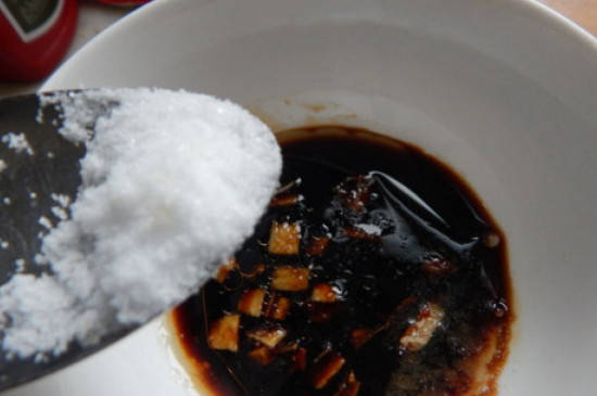 在碗中加入香醋、蒜末、盐搅拌均匀,制作成蘸酱。