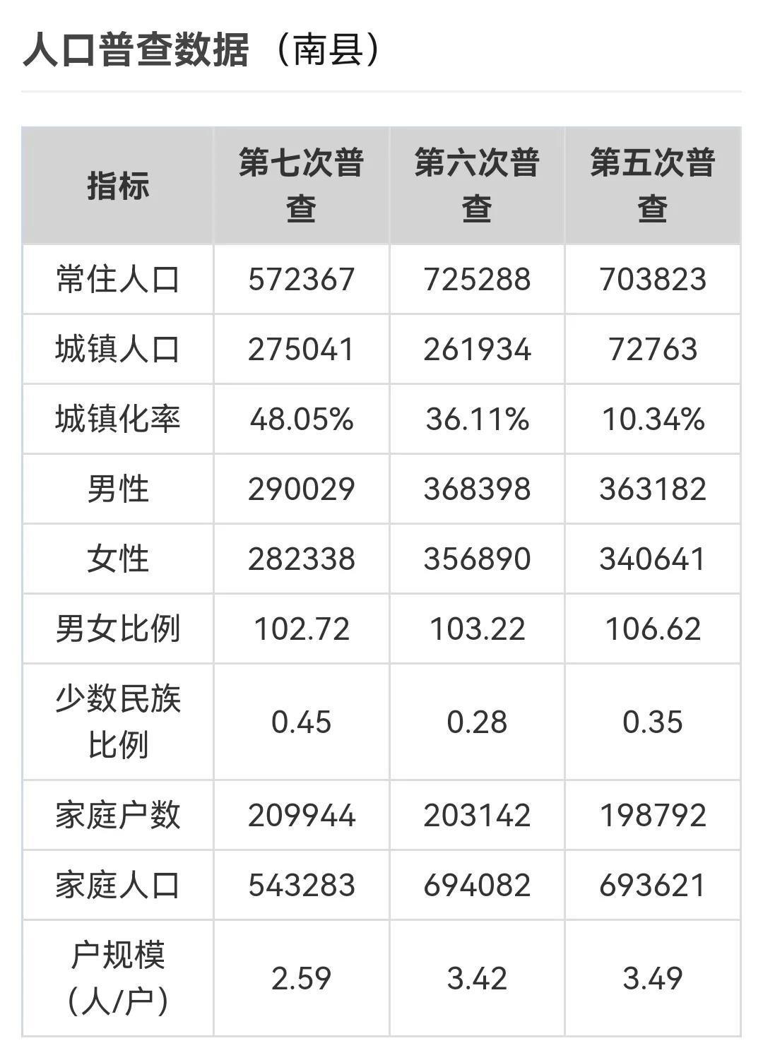 根据第七次人口普查数据,截至2025年11月1日零时,南县常住人口572367人。