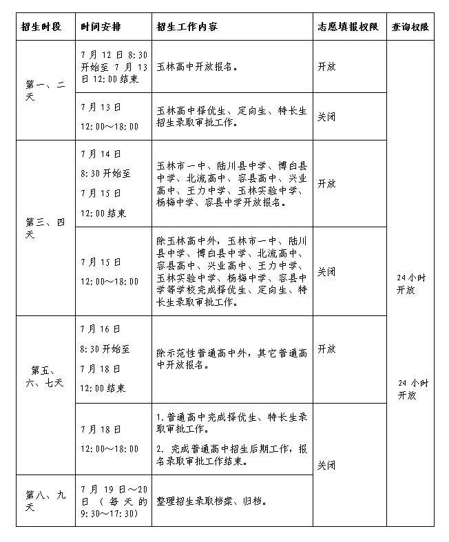 记者了解到,今年玉林市总结经验并继续大力推行普通高中网上招生录取改革,深入推进“阳光招生”,确保招生工作“公平竞争、公正选拔、综合评价、择优录取”,其有如下特点:一是招生信息更加公开透明,招生网上将实时显示各普通高中招生计划、报名人数及招生计划内的拟招最低成绩,以便让考生及家长及时全面地了解高中招生信息;二是招生录取工作更加公平、公正。由于各普通高中招生计划及各分数段人数是公开的,招生专用软件也设置有以学考等级成绩为依据在各校招生计划内择优录取的程序,因此,只要考生“量体裁衣”地进行填报志愿,就可以获得公平、公正的录取结果。三是学生有更充分的选择权利。在规定的时间内学生可以根据自己的需求和判断,对所报高中学校进行多次选择和改报。四是查询学考信息更为便捷。高中招生专网将与电信、报刊、电台、电视台等单位联动,使学生家长可以多渠道全天候地查询招生信息。五是监督更为有力。由于高中网上招生录取工作公开透明程度非常高,非常有利于纪检部门、教育行政管理部门、学生、家长及社会各界的监督。