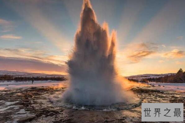 史托克间歇泉在冰岛首都雷克雅未克附近,这座喷泉大约每隔4到8分钟就会喷发一次,十分有规律,喷出的水柱最高可达70米。