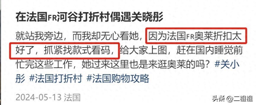 偶遇明星很常见,偶遇关晓彤却不常见!近日,某网友在巴黎打折村,偶遇到了比较难偶遇的“国民闺女”关晓彤。