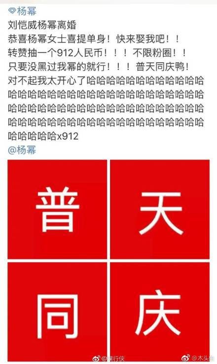 【真香!杨幂粉丝抽奖庆祝偶像离婚】杨幂离个婚,粉丝跟过年一样,纷纷搞起抽奖活动庆祝自己偶像喜提单身。