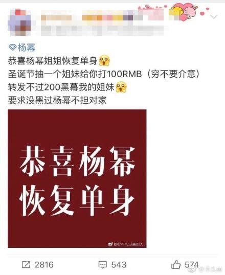真香!杨幂粉丝抽奖庆祝偶像离婚
