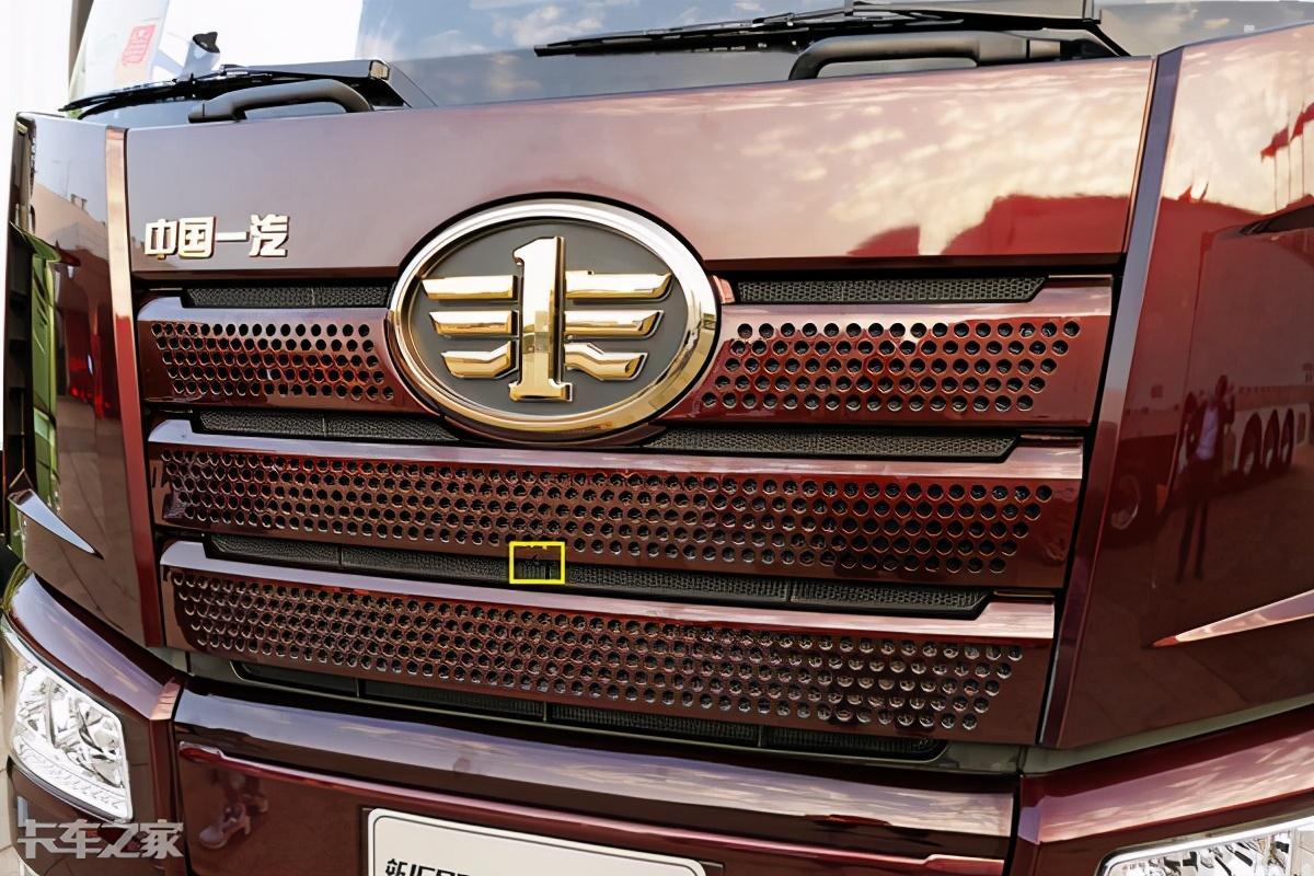 解放金标搭配波尔多红显得整车很高级,同时这种配色设计也让粗壮的进气格栅内敛了很多,有一种隐而不发的气势。并且仔细观察,能在第二道进气格栅中下部位置,发现一个摄像头,这是原厂匹配的四路影像摄像头,有了原装的再也不用咱们自己后加装了。