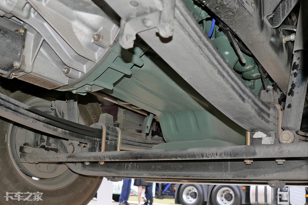 车辆装配了F5N型号前桥和速比为3.727的435型号冲焊桥,整体的动力匹配也都是我们最为熟悉的零部件,并且整车采用鼓式制动系统,并采用了前后少片簧的悬架,这在保证承载性的同时,也能够提高车辆的行驶舒适性和降低整车自重。