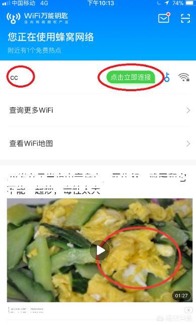 3、打开后,WiFi万能钥匙将会自动扫描你周围的Wifi热点。点击需要连接的WiFi,会出现连接的教程,教程的步骤如下图。