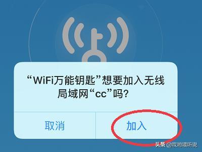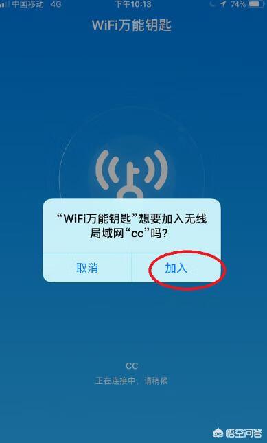 7、这时系统提示“WiFi万能钥匙想要加入无线局域网”,我们选择“加入”按钮即可。